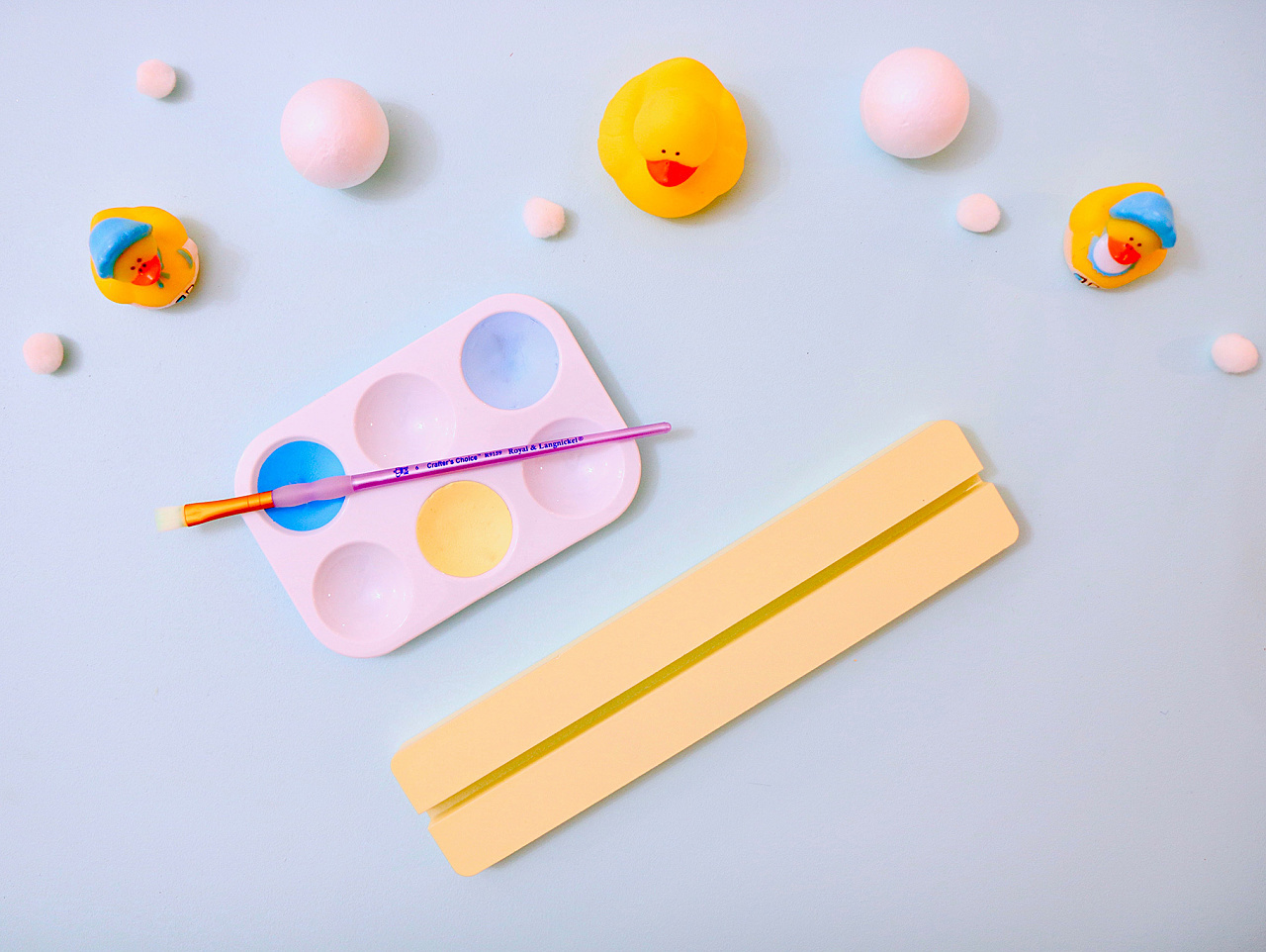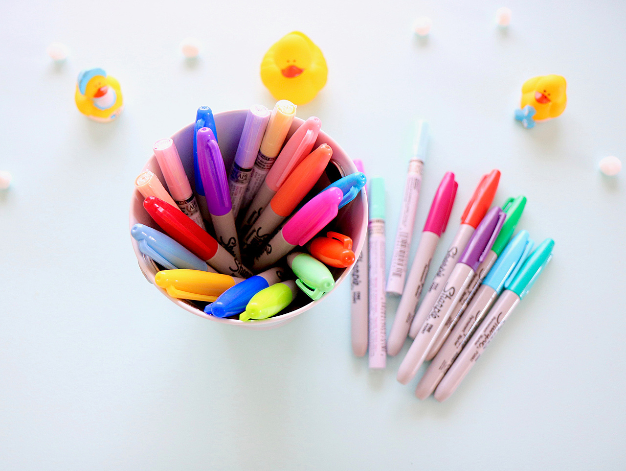 Fill a white pail from the Pastel Color Favor Pails with permanent markers and paint markers for guests to use to decorate the ducks.