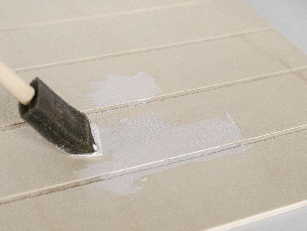 Paint the entire slat sign using white acrylic paint and allow to dry completely before the next step. Be sure to get inside the grooves of the sign for complete coverage.