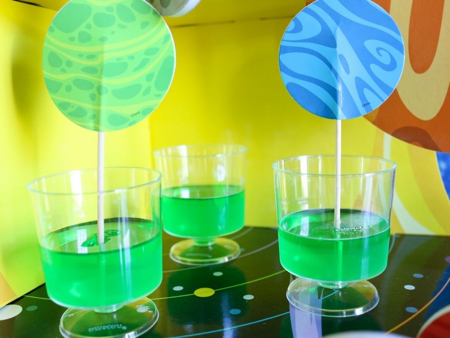 For an easy and kid-approved treat, add lime jello to Tiny Pedestal Clear Cups and insert a Space Party Cupcake Pick for extra decor. We loved that the jello color matched our space themed supplies.