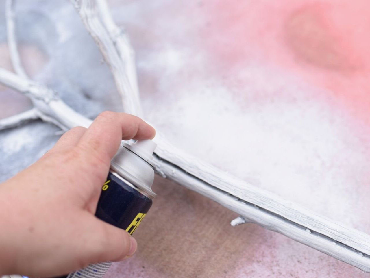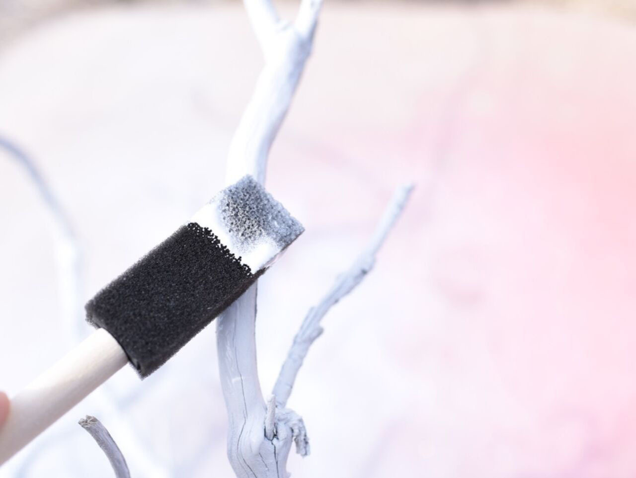 Spray paint the branches with white spray paint using multiple light coats. Be sure to paint all angles of the branches so that there is no brown showing.