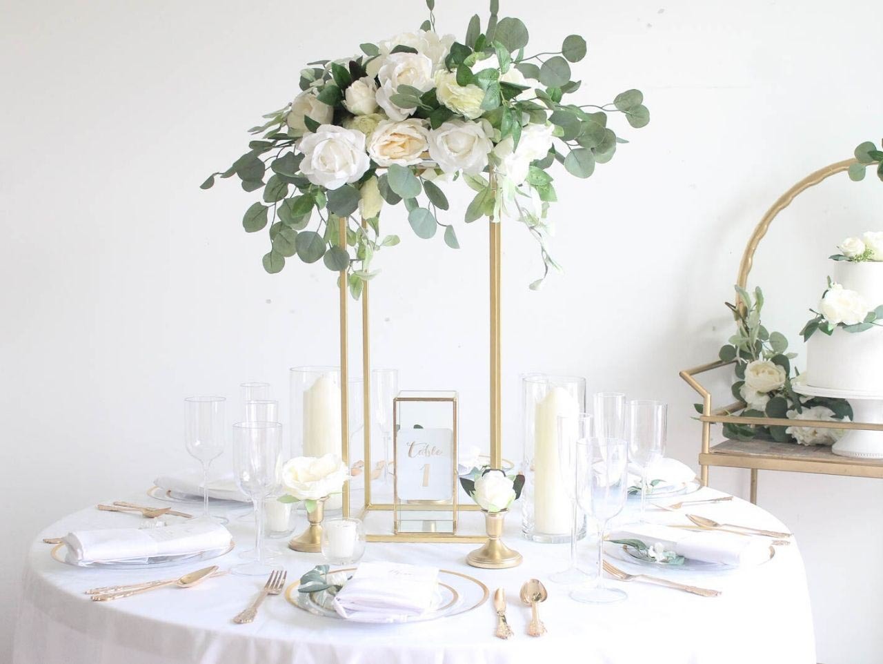 Place your completed centerpiece on your wedding table and surround with various Candles and Vases for romantic, elegant tablescape!