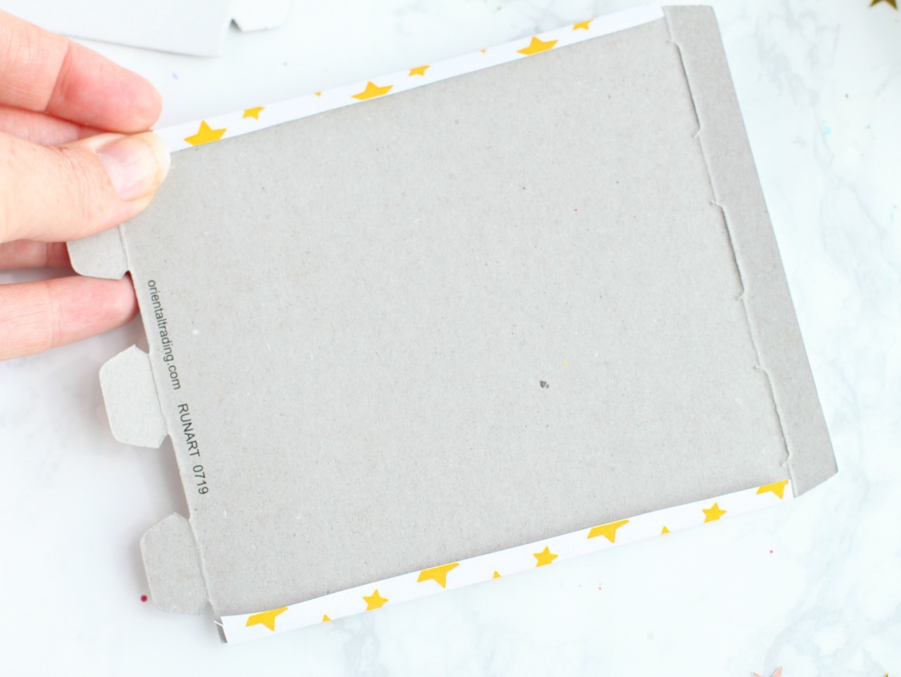 Download and print the DIY kaleidoscope printable on white paper. Cut out and glue to the front of the cardboard kaleidoscope piece in the DIY Kaleidoscope kit.