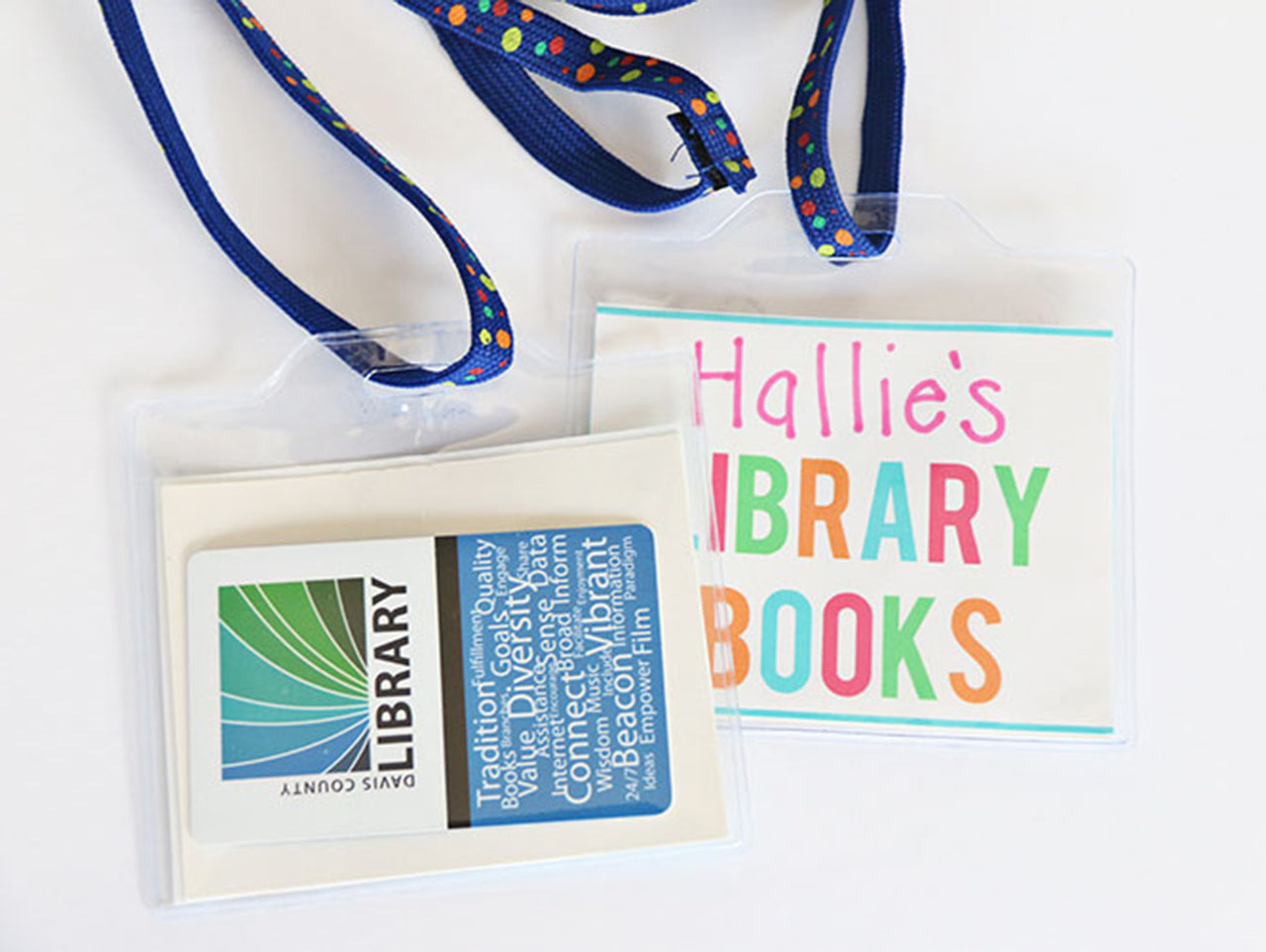 A great trick for Library Card storage, is to slide it in the back of the tag. This helps to keep the library card from getting misplaced. It’s so easy for little hands to slide it in and out…and it stays put!
