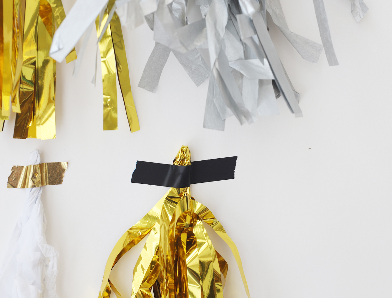 Next, we are going to use the washi tape to attach the tassels to the wall, as shown here.