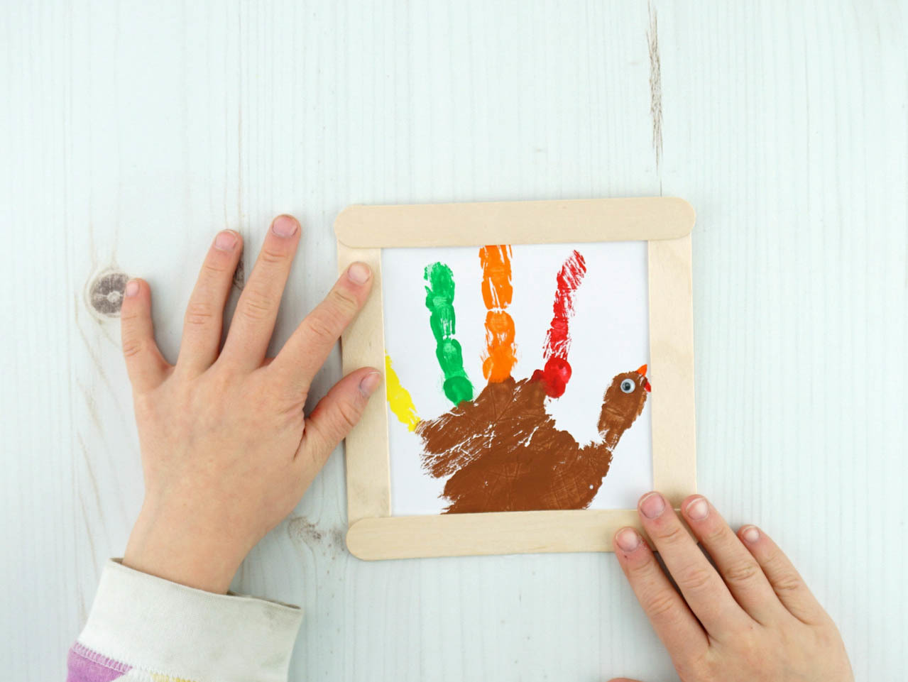 Place your turkey handprint craft up on display on your fridge for the Thanksgiving holiday.