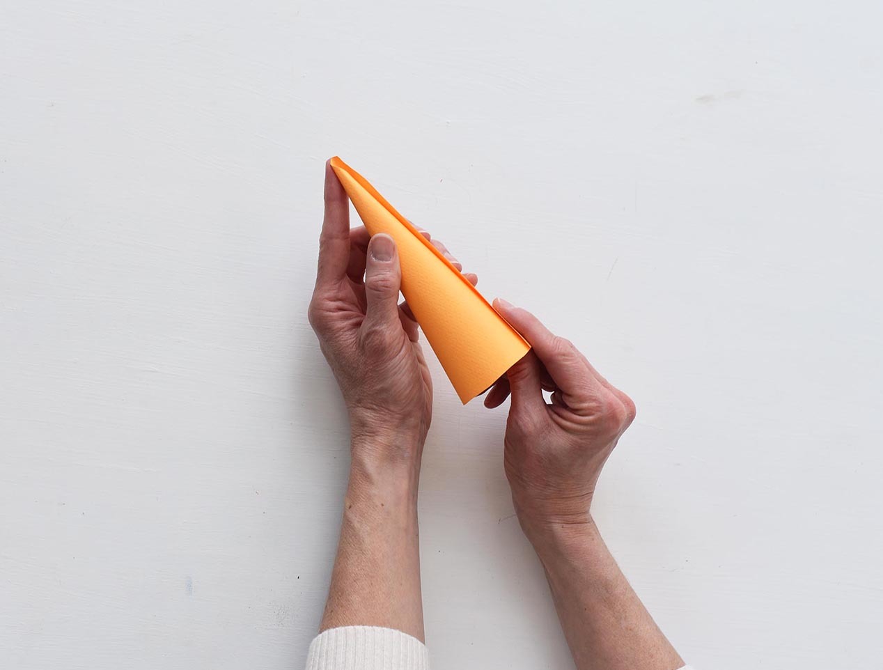 Lightly fold the tail in half-length wise. Fold the bottom edge back a half inch and glue to the back of the box.