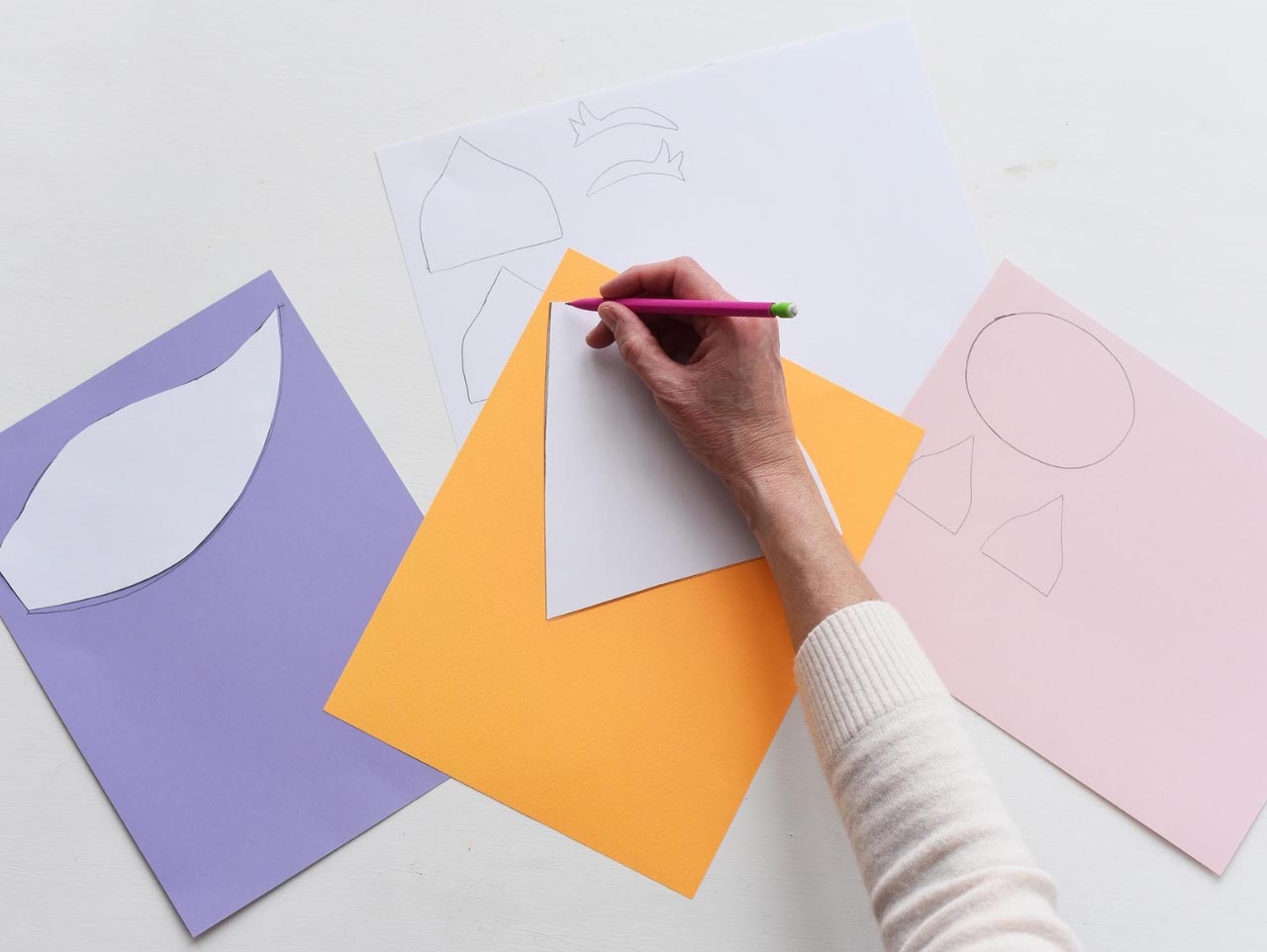 Trace template shapes onto colored paper. Refer to the photo for which colors we used for each piece. But you can always choose any color you like!