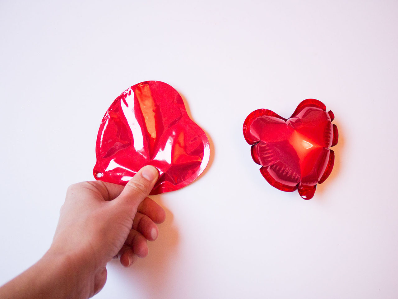 Inflate the small heart balloons by smashing the packet inside to activate them. This step is so much fun!