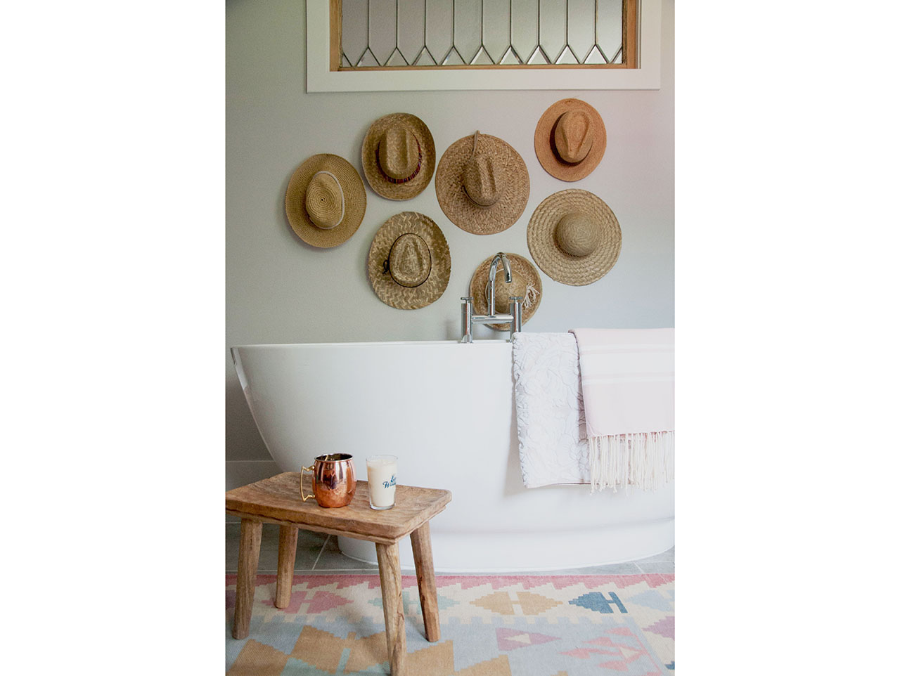 Identify the hats you want to display on your wall. I used a few hats from my collection and supplemented a new straw hats. They come in sets of multiples, which would be super handy if you were covering a larger space.