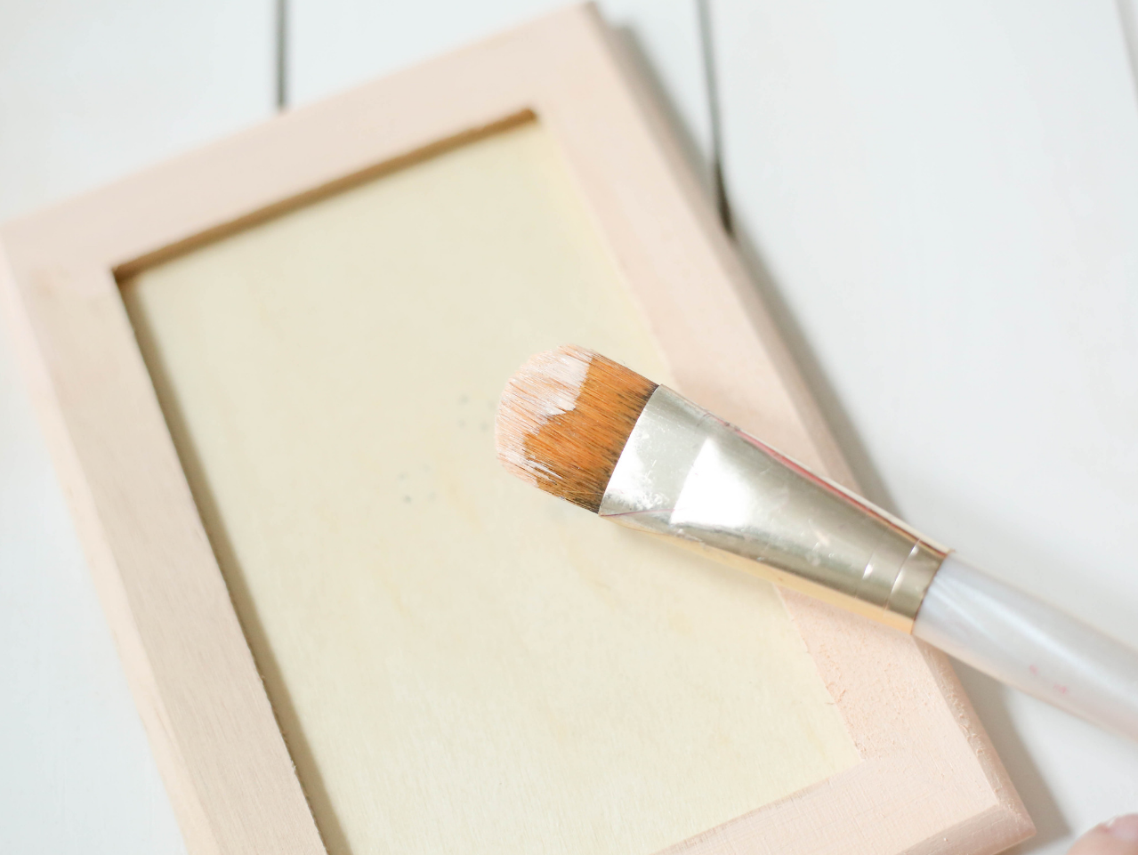 Paint the wooden frames with acrylic craft paint in your favorite tone. Here we have used a lovely pastel blush color, which will compliment your floral background. You could use any complimentary tone from your chosen print.