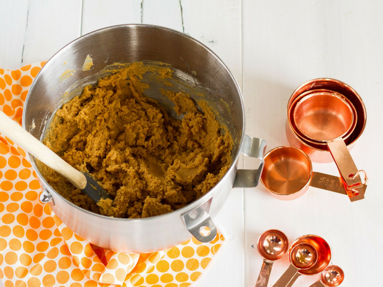 In a large bowl or in the bowl of a stand mixer, beat peanut butter and butter until smooth. Add the brown sugar and granulated sugar and beat until fluffy. Add egg and vanilla, and beat until smooth. Add the dry ingredients and mix until combined.