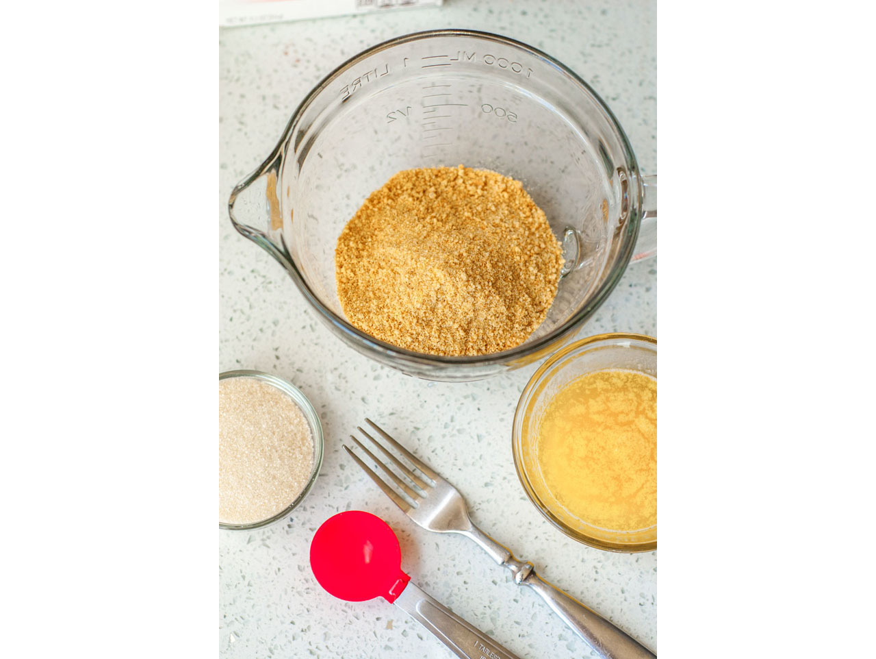 Mix crust with 5 tablespoons melted butter or margarine, as direct on Jello No Bake Cheesecake Box.