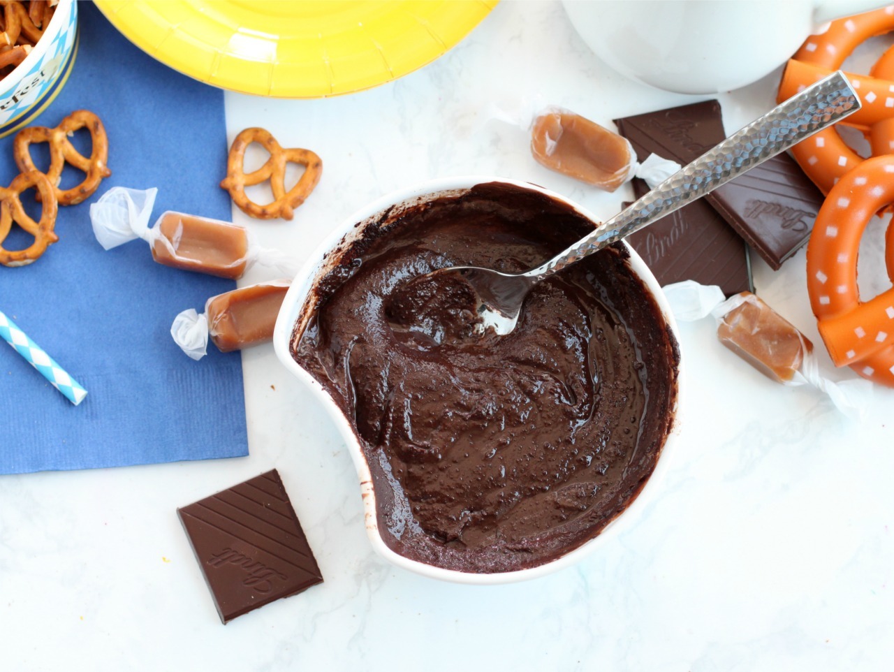 Melt caramels and 2 Tbsp heavy cream in a double boiler or in the microwave until smooth.
