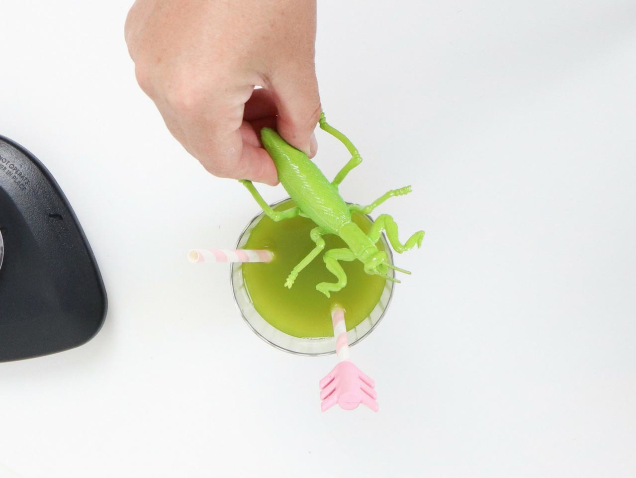 Top off the juice with a bug garnish. You now have the perfect healthy and tasty treat for your hungry little foxes.