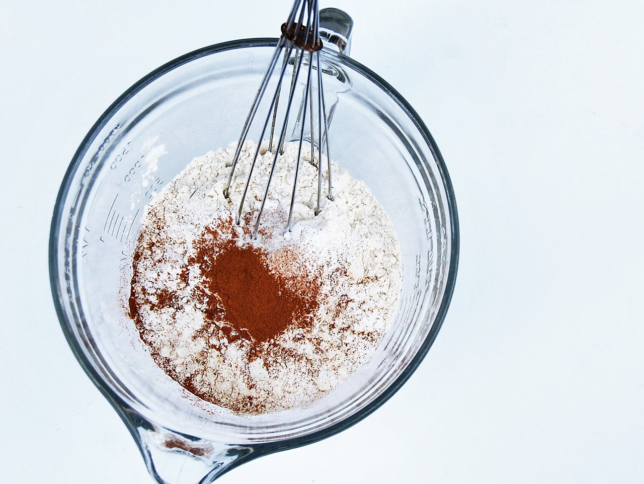 Preheat oven to 350° F. In a mixing bowl, whisk together flour, 1 teaspoon cinnamon, salt, baking soda, baking powder and cream of tarter. Set aside.