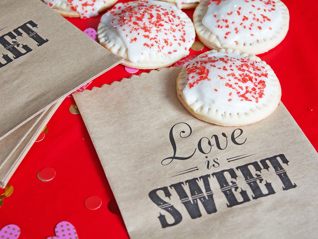Package each pastry in these adorable, love is sweet, kraft pastry bags; that is, if any are left to share!