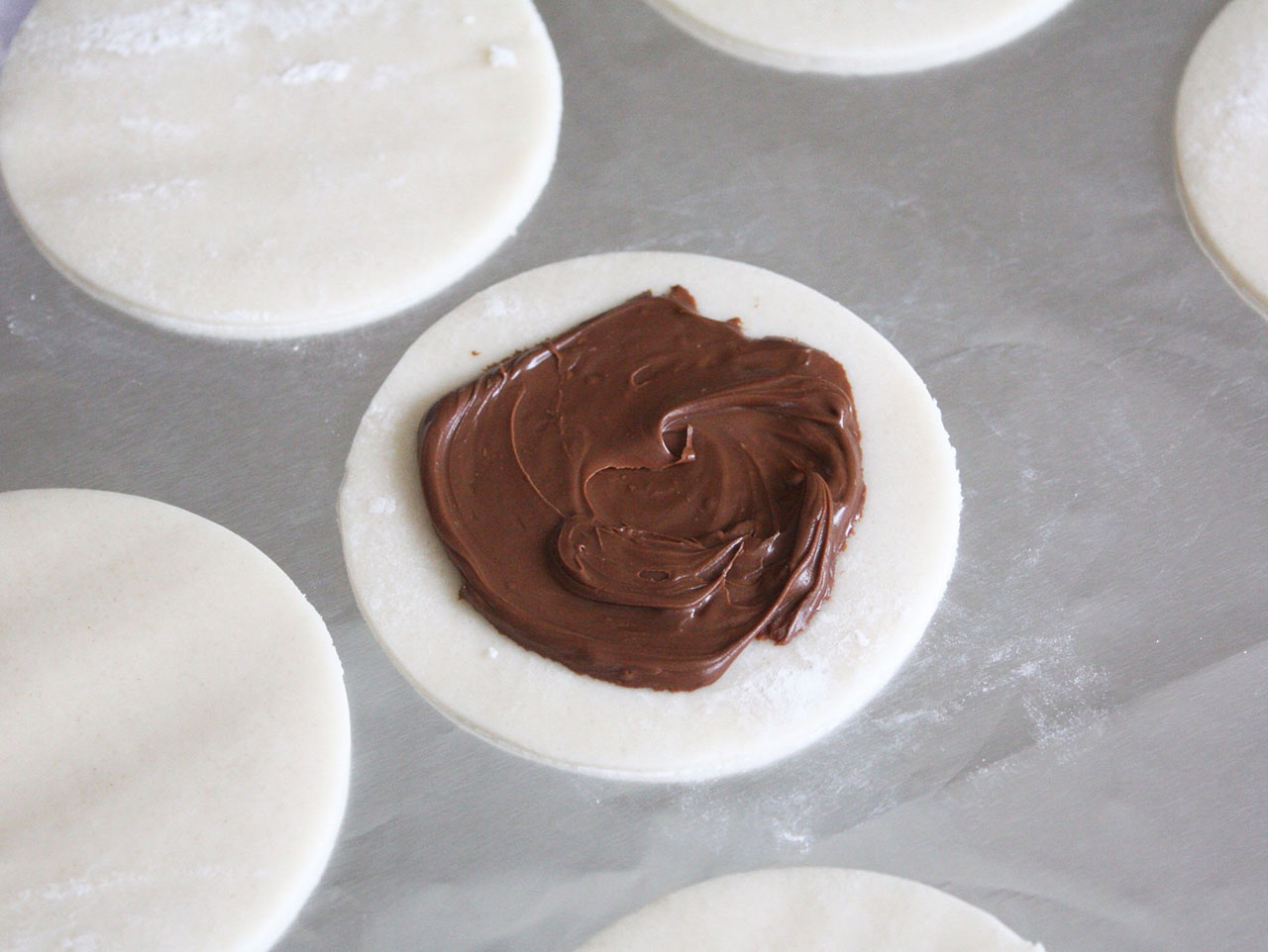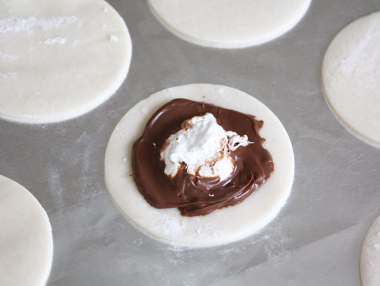 Top the chocolate spread with a dollop of marshmallow cream. Do not overfill.