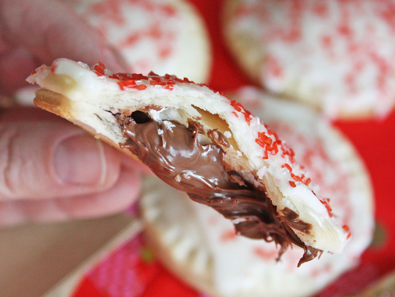 Spread the hazelnut chocolate spread on the over the bottom half of the pop tarts.