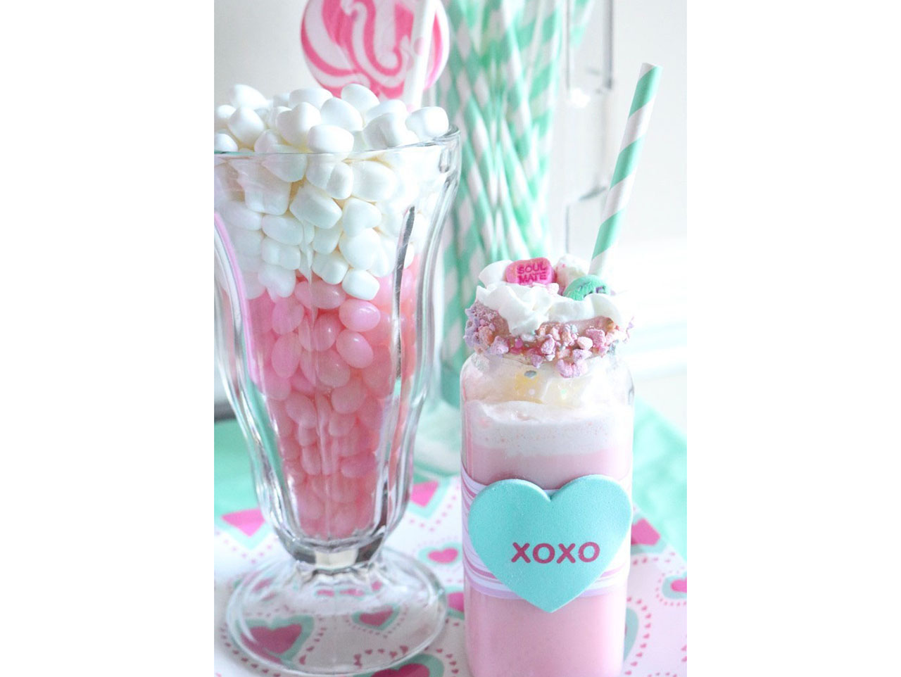 For an extra sweet touch add more crushed Sweet Hearts Conversation Heart Candy and a Mint Green Striped Paper Straws and enjoy!