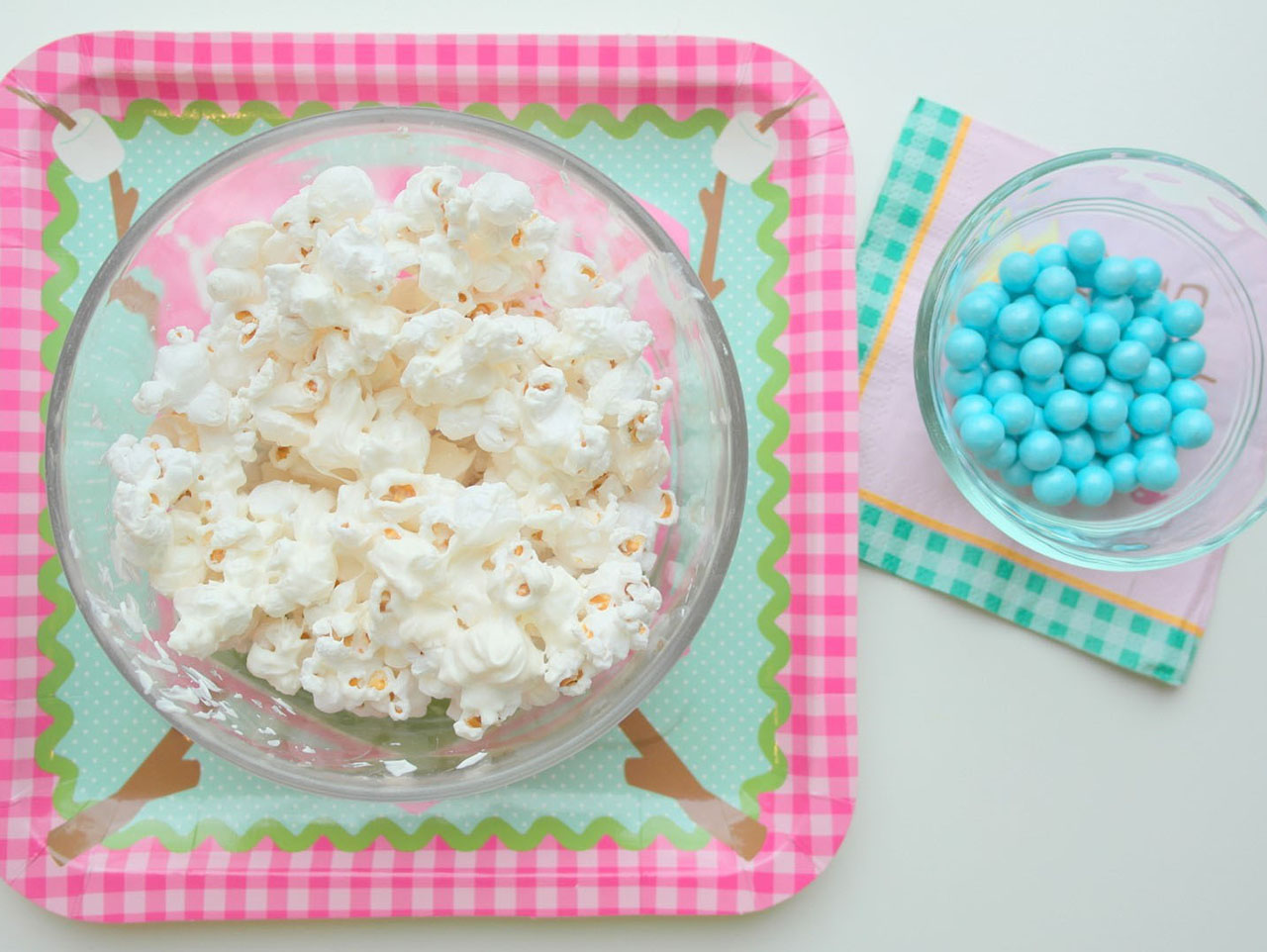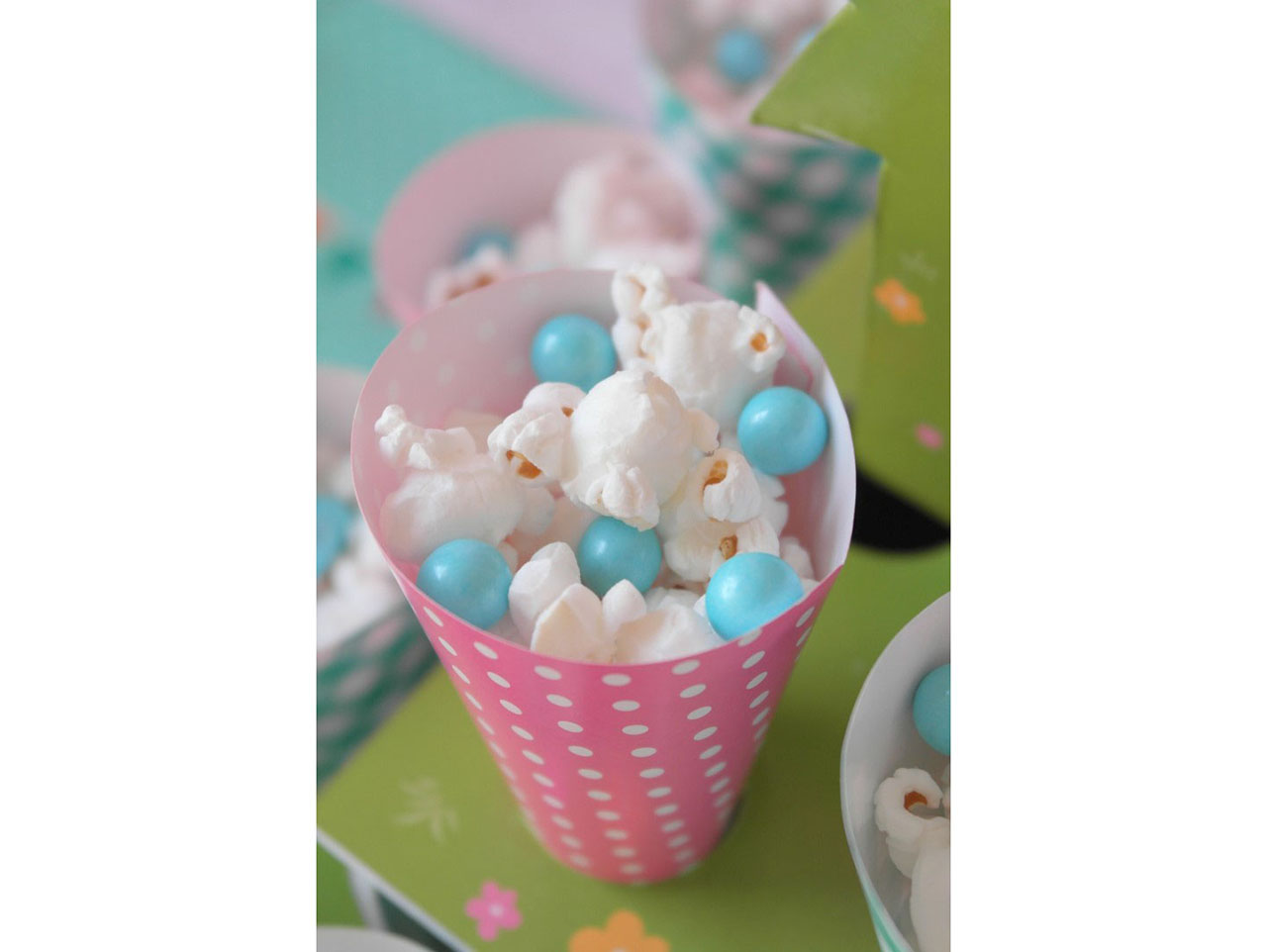 Add a colorful and yummy look and taste to your sweetened popcorn by adding a few girly candies to the mix, such as Sparkling Powder Blue Chocolate Candies.